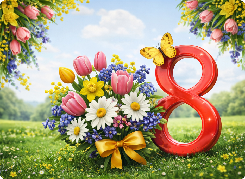 Поздравляем вас с праздником весны, красоты и вдохновения. Пусть каждый день приносит новые возможности, радость от достижений и уверенность в своих силах.